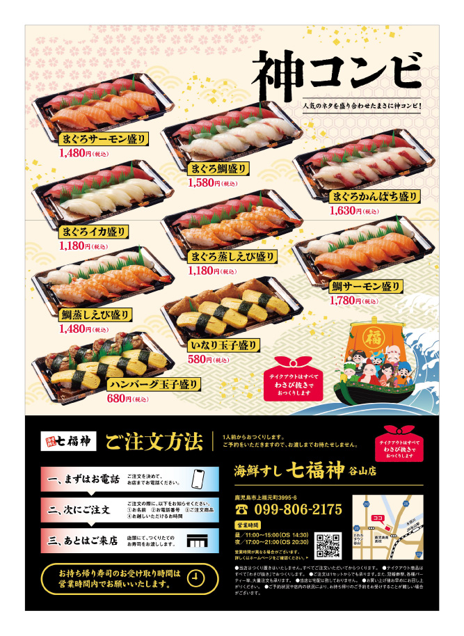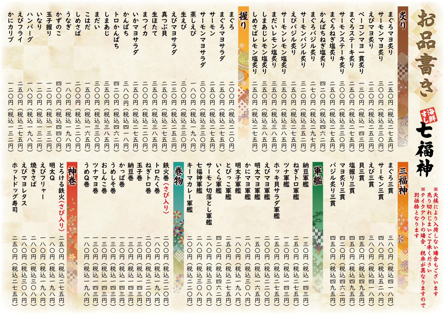 | 七福神 | 2人前 | 7種盛り1,760円(税込) |