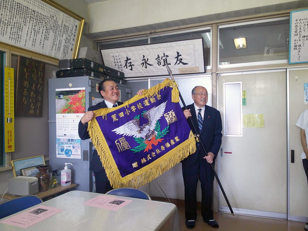 2025年10月20日 / 最終更新日 : 2025年10月20日 jfgroupUser ジェイ・エフグループ新着情報 SDGsの推進につながる取り組み 地域課題の解決を図り地域発展および持続可能な地域の社会づくりに貢献するため、 2025年10月鹿児島銀行が取り扱う「かぎんSDGs推進私募債」を通じて、鹿児島市立荒田小学校に運動会用優勝旗を贈呈しました。 贈呈式には、荒田小学校校長先生、鹿児島銀行鴨池支店長、児童代表、弊社代表取締役会長・社長が出席し賑やかに行われました。 FacebooktwitterCopy