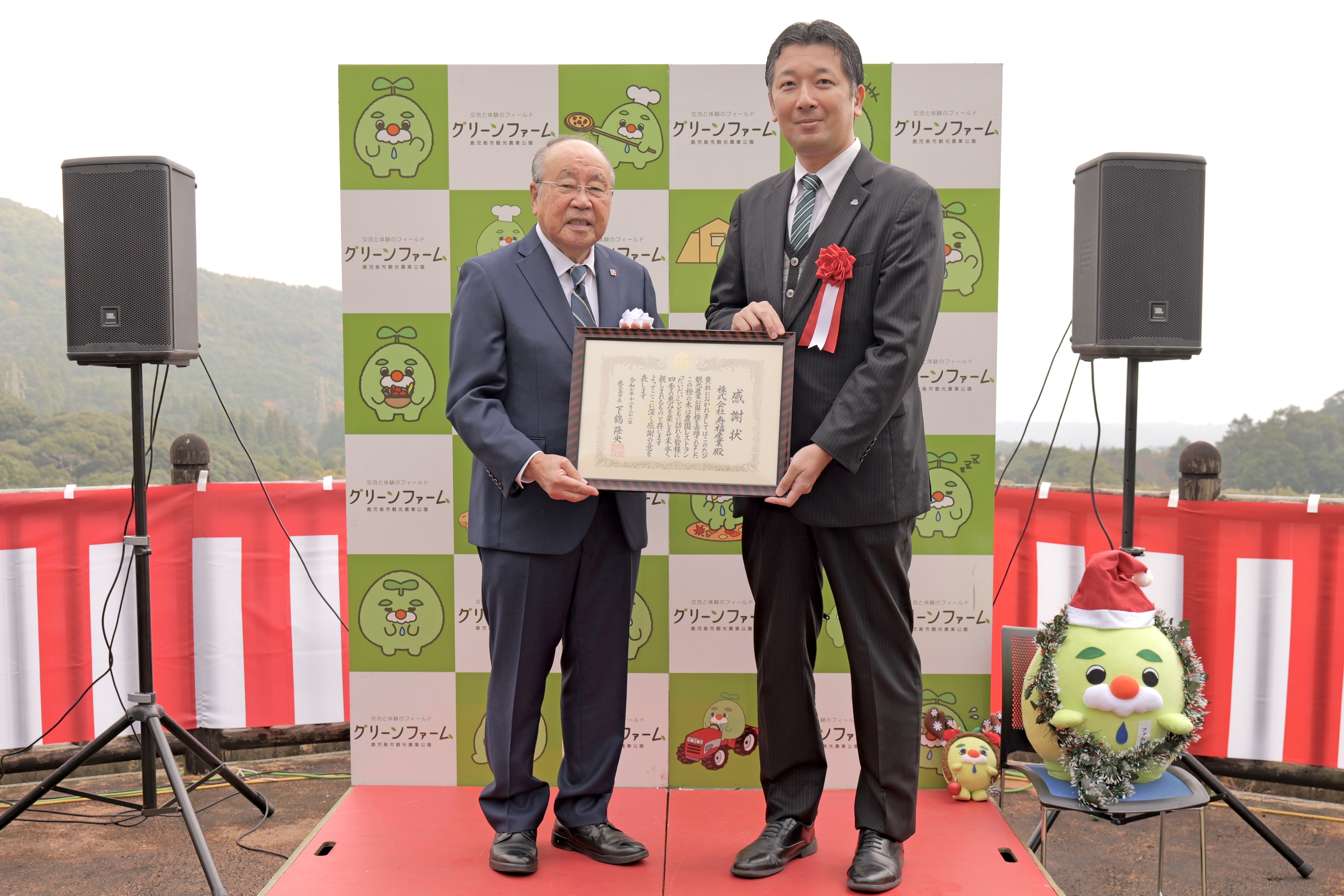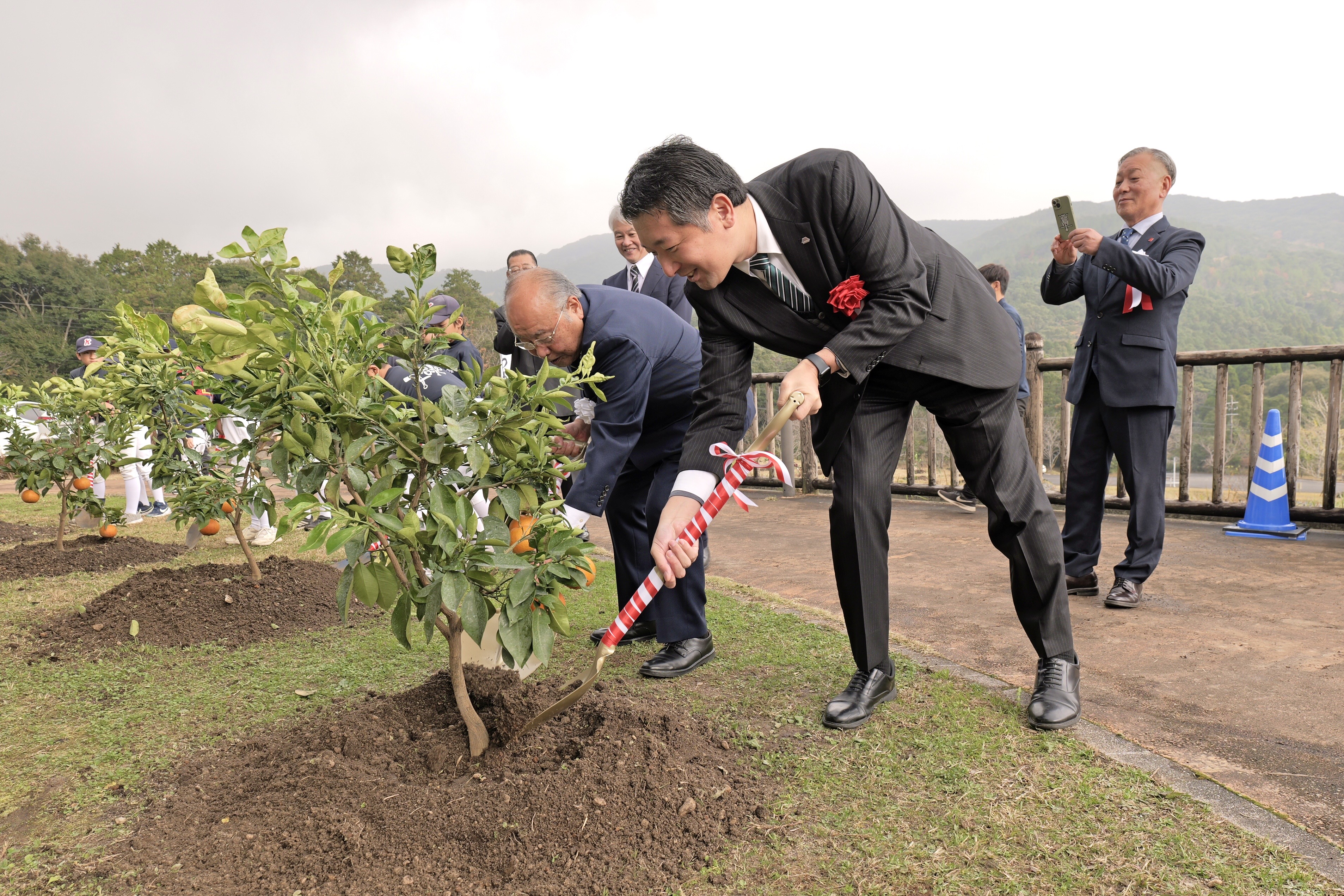 2026年1月7日 / 最終更新日 : 2026年1月7日 jfgroupUser ジェイ・エフグループ新着情報 創業50周年記念 橙(だいだい)の木を寄贈しました このたび当社は、創業50周年を記念し、鹿児島市喜入にあるグリーンファーム(鹿児島市観光農業公園)へ橙(だいだい)の木を寄贈いたしました。 植樹および植樹式は12月21日(日)に執り行われ、鹿児島市副市長様、観光交流局長様、世界遺産・ジオツーリズム推進課長様をはじめ、喜入地域の児童の皆様、ならびに当社代表取締役会長・社長が参加いたしました。 橙は「代々栄える」ともいわれ、縁起の良い木として親しまれています。今回の寄贈が、地域の皆様に長く愛され、次世代へと受け継がれていく象徴となれば幸いです。 FacebooktwitterCopy