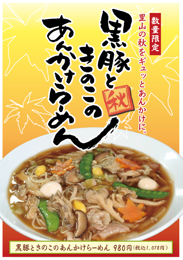 2025年11月1日 / 最終更新日 : 2025年10月27日 jfgroupUser お店からのお知らせ 【十八番】黒豚ときのこのあんかけらーめんのご案内🍁🍁 毎度ご利用いただきありがとうございます。 十八番では、今年も数量限定「黒豚ときのこのあんかけらーめん 980円(税込1,078円)」をご案内しています。 黒豚・しいたけ・まいたけ・しめじ・銀杏・うずらの卵など、 秋の美味しいものをあつあつのあんかけに! 里山の秋🍂🍂🍂を詰め込みました! 是非、十八番で秋のらーめんをお楽しみください🍁🍁 ■実施店舗/十八番らーめん全店 ■実施期間/2025年11月1日~ FacebooktwitterCopy
