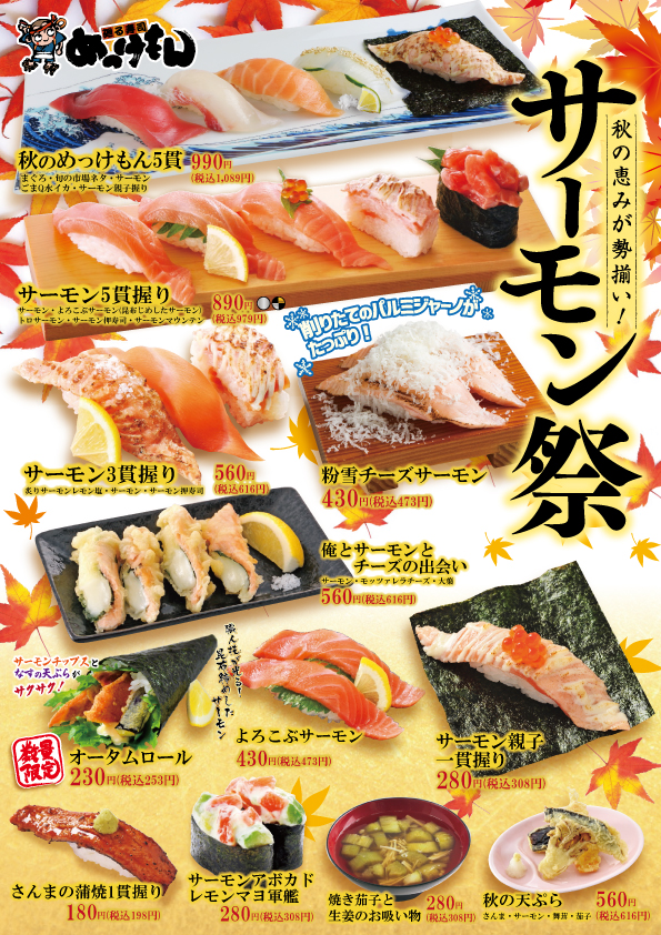 めっけもんでは、秋の恵みが勢ぞろい! サーモン祭りをご案内いたします。