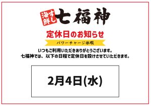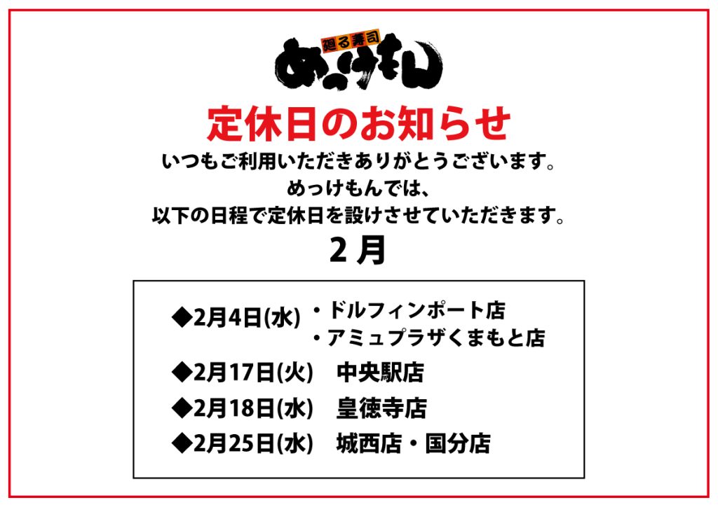 2025年12月23日 / 最終更新日 : 2025年12月23日 jfgroupUser お店からのお知らせ 【めっけもん】2月 定休日のお知らせ いつもご利用いただきありがとうございます。 めっけもんでは、以下の日程で定休日を設けさせていただきます。 ご迷惑をお掛けしますが、よろしくお願い致します。 FacebooktwitterCopy