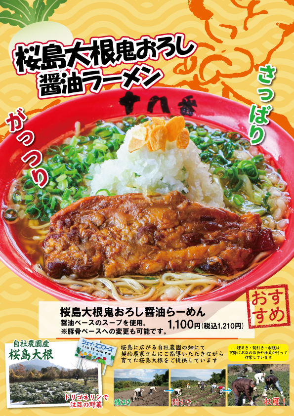 【十八番】🌋桜島大根鬼おろし醤油らーめんのご案内