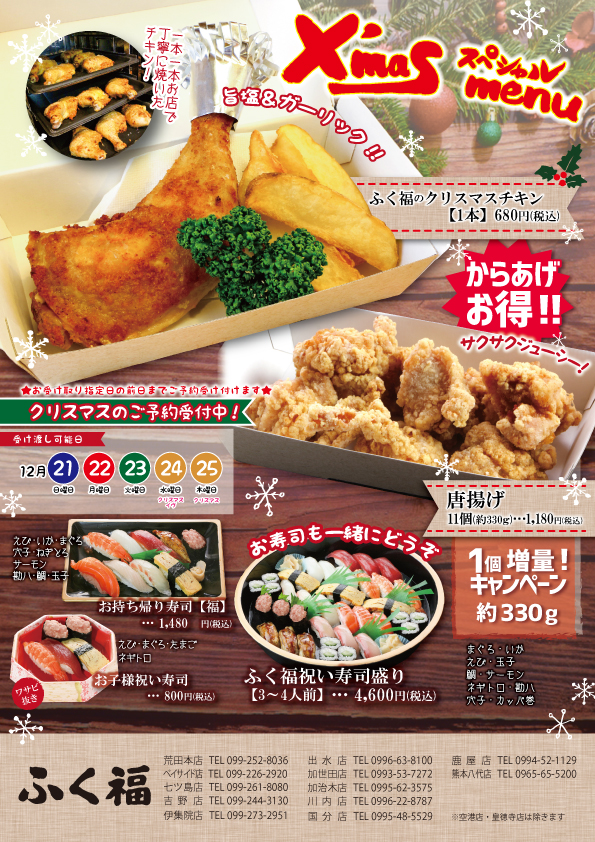 【ふく福】クリスマスチキン&唐揚げご予約受付中🍗🎄🍗