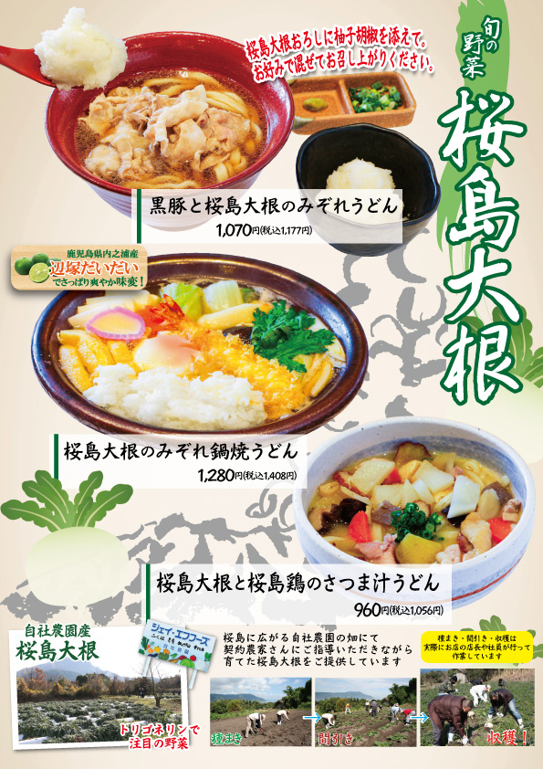 ふく福では、自社農園で栽培した桜島大根を使用した桜島大根フェアを開催中です!