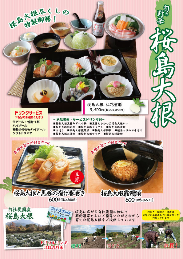 ランチにて「桜島大根松花堂膳 3,500円(税別3,850円)」をご案内しています。